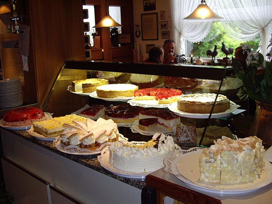 Das Café im Hotel Mandelholz Grüne Tanne ist bereits seit Jahrzehnten ein Geheimtipp für Liebhaber anspruchsvoller Kuchen- und Tortenbüfetts. Die Geheimnisse der hauseigenen Konditorin sind frische, beste Zutaten - teilweise nach alten Rezepten - und vor allem die besondere Liebe zum Backen! Probieren Sie doch einmal die doppellagige Mandelhölzer Kirschtorte, lecker... Gern reservieren wir für Sie einen Kaffeetisch auf Anfrage.