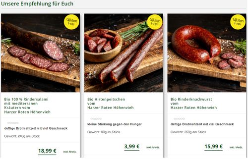 Es hat Ihnen geschmeckt? Wir betreiben vor Ort eine hofeigene Bio-Fleischerei und einen Hofladen. Sie sind gern eingeladen, die selbst erzeugten Bioprodukte - von Rind- und Schweinefleisch aus eigener Aufzucht, Haltung und Schlachtung bis hin zu frischen Eiern und Honig von regionalen Imkern - mit einem guten Gefühl mit nach Hause zu nehmen. Unsere Produkte sind nun auch in unserem Onlineshop unter www.brockenbauer.de/shop ganz einfach bestellbar.