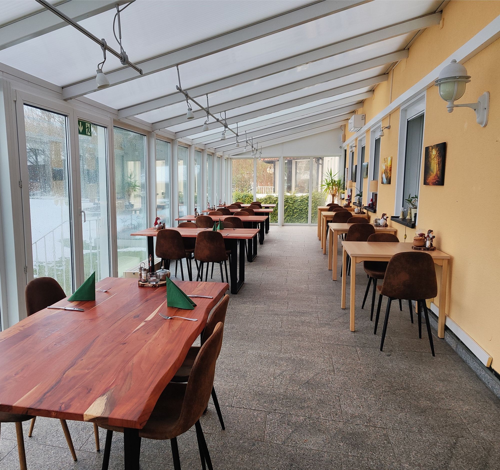 Im gemütlichen und hellen Wintergarten mit Blick auf die Parkanlage können bis zu 40 Personen speisen. Nach Ihrer Feier können Sie dann in einem unserer insgesamt 18 Einzel-, Doppel-, Twin- und Dreibettzimmer nächtigen. Der nächste Tag beginnt für Sie mit einem abwechslungsreichen Frühstück in gelöster Atmosphäre.