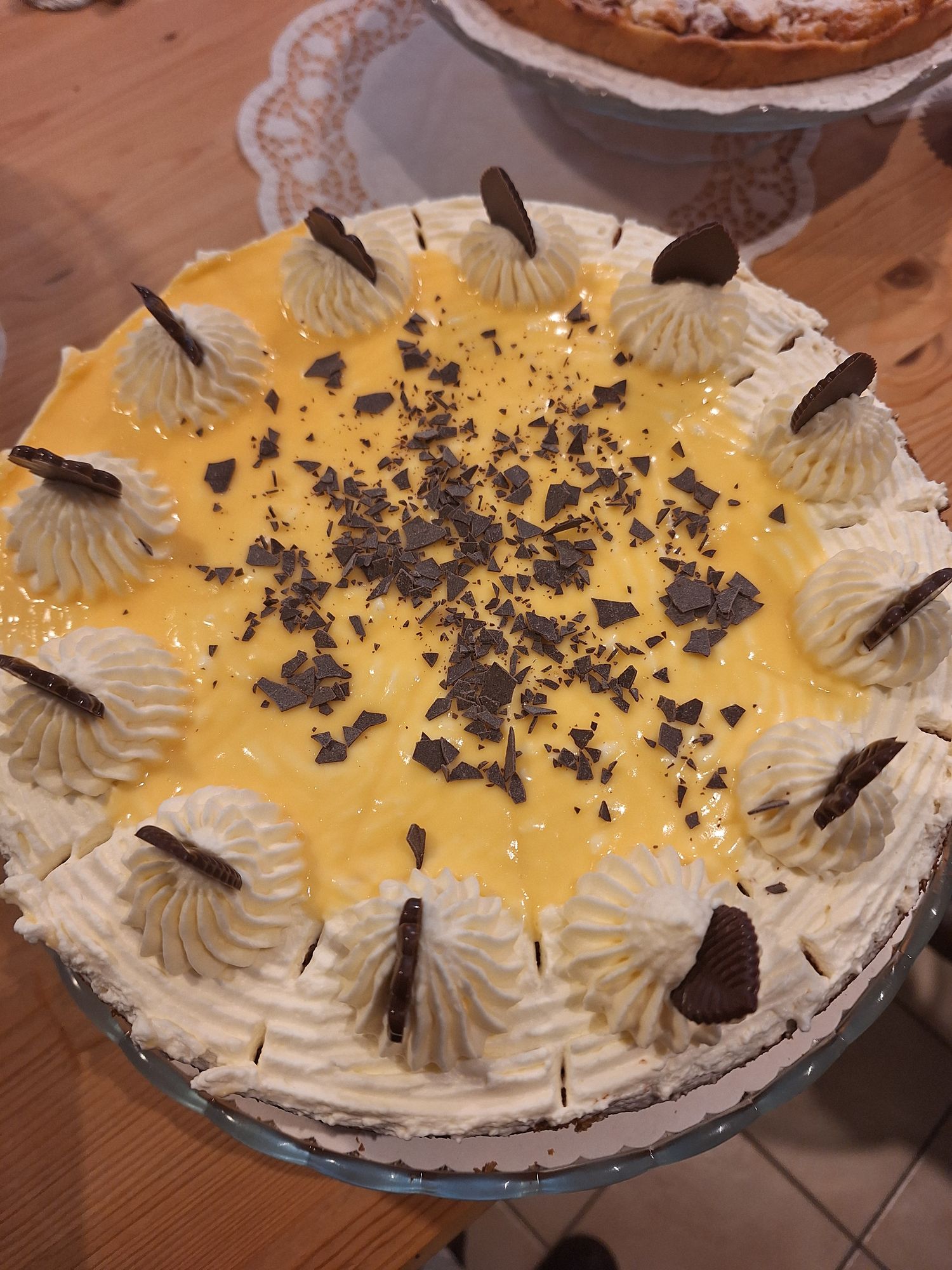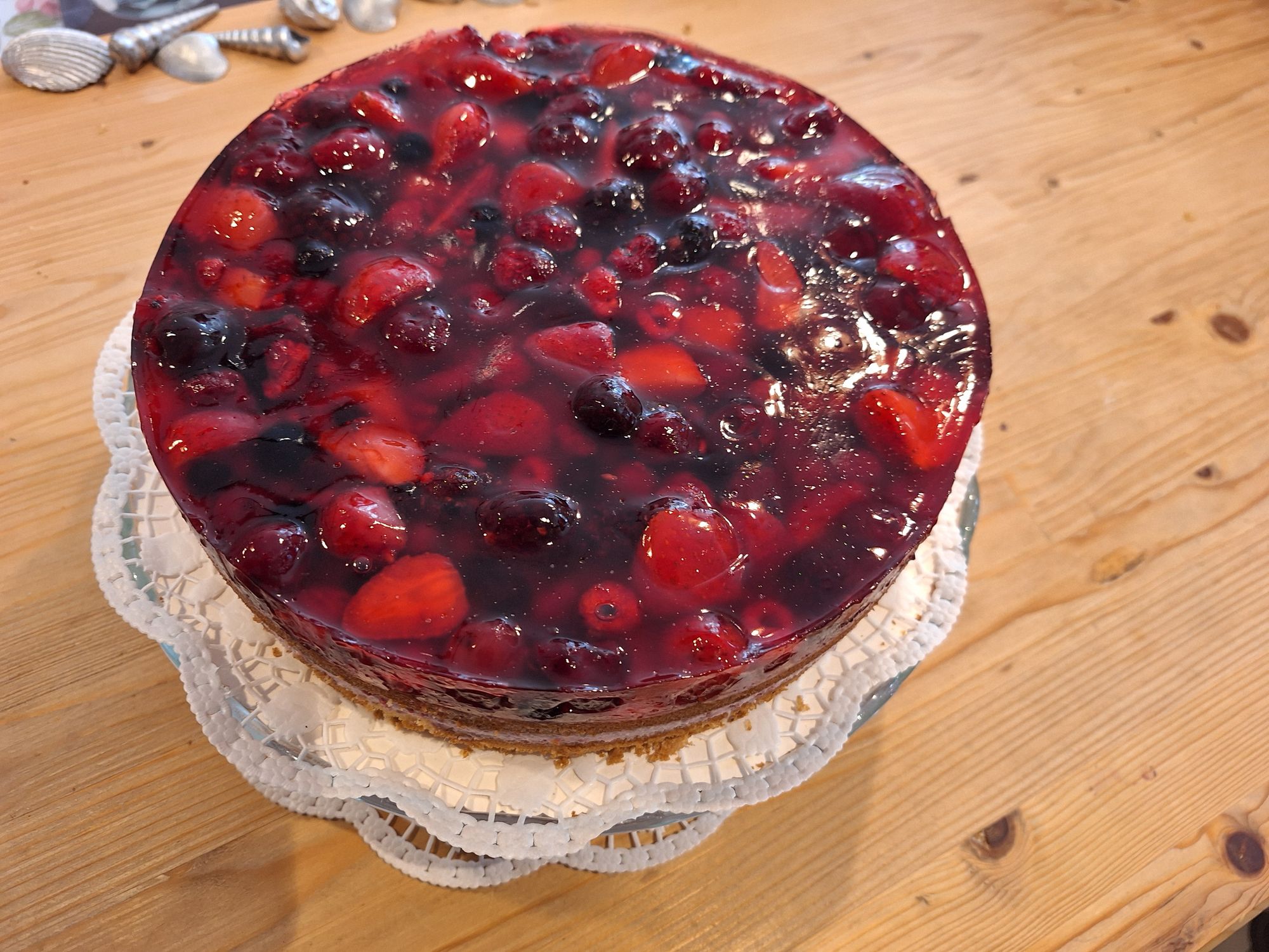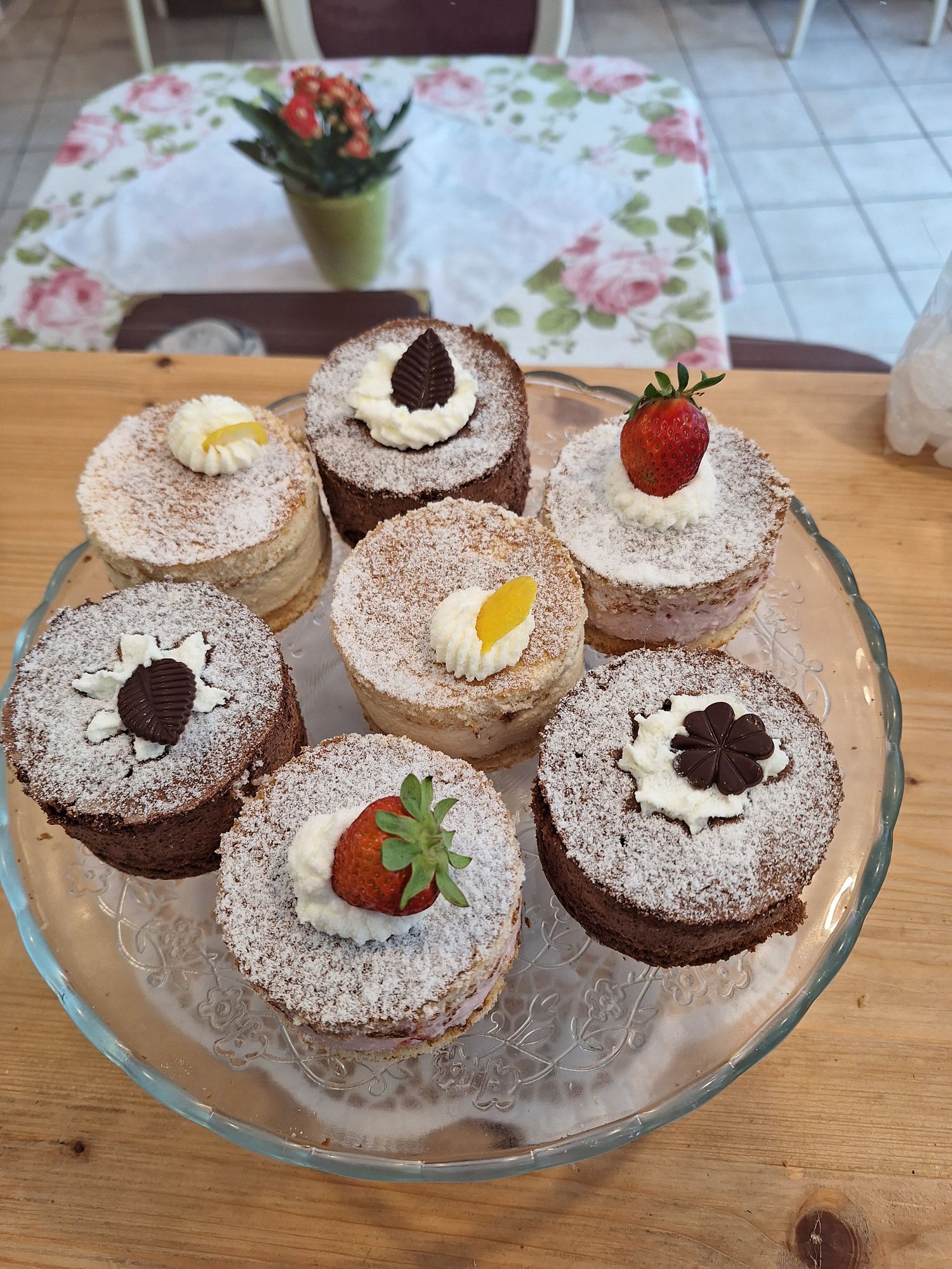 Die Inhaberin verwöhnt ihre Gäste mit frisch gebackenem Kuchen. Auch hier ist für jede Gaumenfreude etwas dabei - ob Gugelhupf, Cremetörtchen, Eierlikör-Torte oder Obsttorte - schon allein der Blick darauf lässt "das Wasser im Munde zusammenlaufen".