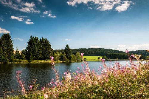 Die Teiche glitzern wie hingetupft aus dem satten Grün der Wiesen auf der Clausthaler Hochebene. Inmitten dieser, von weiten Wäldern umsäumten Landschaft liegen spielerisch verstreut die Häuser des ehemaligen Fuhrherrendorfes und heutigen Luftkurortes Buntenbock. Sein Entstehen verdankt der Ort der alten Zeit des Bergreichtums des Oberharzes, denn hier siedelten die Fuhrherrenleute mit Pferden und Wagen, die das Erz, aber auch das Holz transportierten. Den heutigen Reichtum von Buntenbock macht seine Lage aus, abseits der großen Straßen, sowie seine klare Luft.