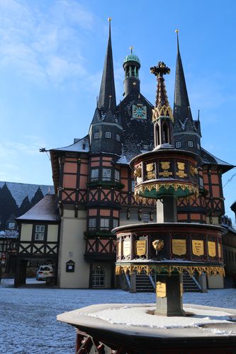 Eine Perle mittelalterlicher Baukunst ist das berühmte Wernigeröder Rathaus im Zentrum der Stadt, das Einheimischen und Ortsfremden nicht nur für Besichtigungen, sondern auch für eine ganz besondere Hochzeit zur Verfügung steht. Möchten Sie das Rathaus von innen bestaunen, steht Ihnen Baumeister Hilleborch zur Verfügung, der Sie auf einer der angebotenen Stadtführungen "Vom Keller bis zum Dach" begleitet.