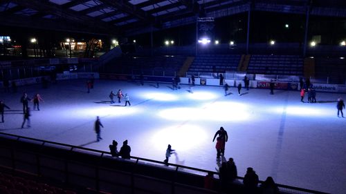 Attraktive Eissportveranstaltungen, Schlittschuhlaufen, Eisstockschießen für Gäste, Eisdisco, Eishockeyspiele oder ein Besuch im Stadion-Restaurant mit Blick auf die Eisfläche.