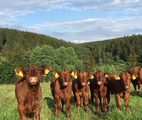 Das Harzer Rote Höhenvieh ist eine alte, deutsche Mittelgebirgsrasse und ist weiterhin vom Aussterben bedroht. Unser Familienbetrieb Brockenbauer Thielecke widmet sich mit Herz und Seele der Erhaltung und Zucht des Harzer Roten Höhenviehs. Den wunderschönen, rotbraunen Tieren, die man im Oberharz des Öfteren auf den Oberharzer Bergwiesen entdecken kann - sieht man regelrecht an, dass es Ihnen mit dem kräuterreichen Futter an nichts fehlt. Die Tiere haben Zeit zum Wachsen und werden ohne Kraftfutter großgezogen.