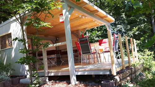im Außenbereich: überdachter Freisitz und Terrasse