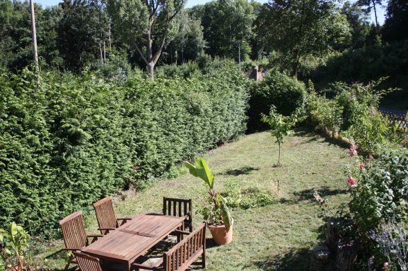 Eigener Gartenbereich mit Gartenmöbeln, Grill und Feuerstelle