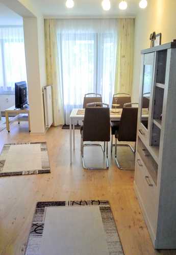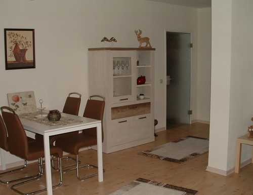 Das Wohnzimmer mit Essbereich ist in freundlichen Farben eingerichtet. Neben dem bequemen Boxspringbett im Schlafzimmer gibt es zusätzlich im Wohnbereich eine weitere Schlafmöglichkeit für 2 Personen (ebenfalls Boxspringunterfederung, für Dauerschläfer geeignet). Küche und Bad sind praktisch, modern und hell. Für Ihren Aufenthalt als Paar oder als Familie ist die Ferienwohnung gleichermaßen gut geeignet.