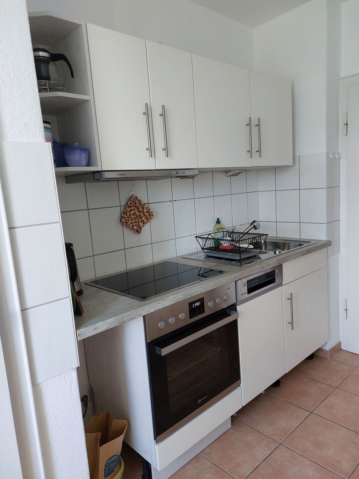 Voll ausgestattete Küche mit Zugang zum Balkon