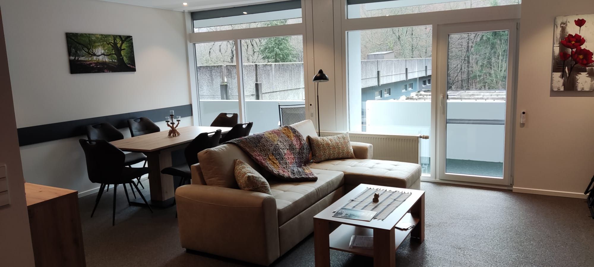 Freuen Sie sich nach einem aktiven Tag auf Ihren behaglichen Rückzugsort - die Ferienwohnung Wipfelblick für 2 - 5 Personen mit einem Wohnzimmer, das man bei mehr als 2 Personen auch als Schlafbereich (Schrankbett) nutzen kann, einem separaten Schlafzimmer, einem Bad mit Dusche zum Entspannen und einem Balkon.