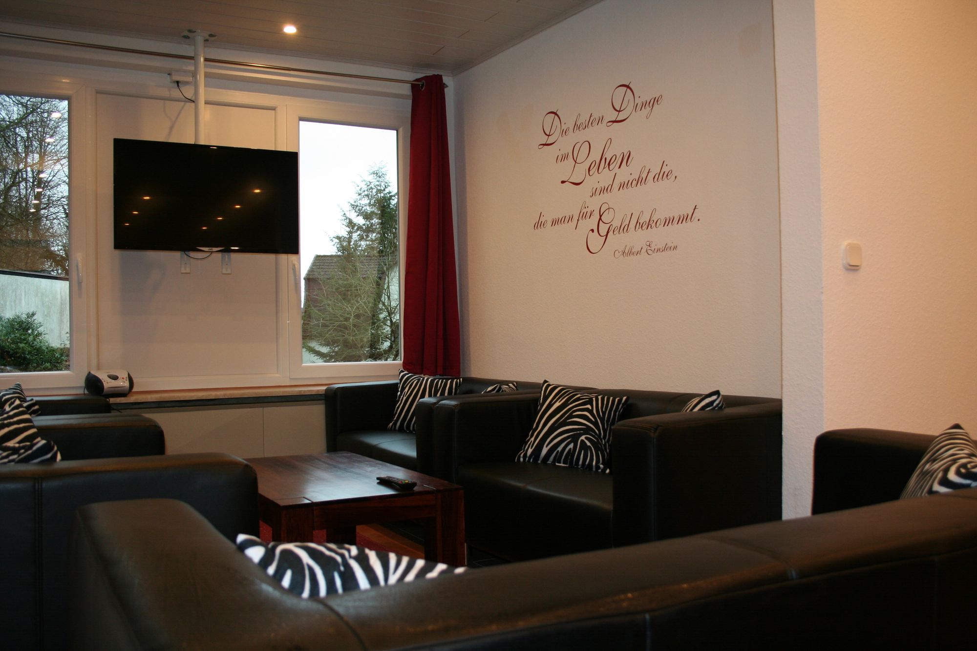 Wohnzimmer mit großer Wohnlandschaft, LCD-TV, Radio und Musikanlage