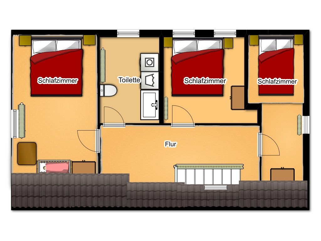3 Schlafzimmer mit jeweils einem Doppelbett