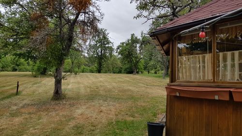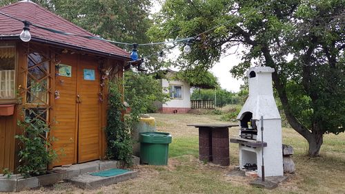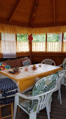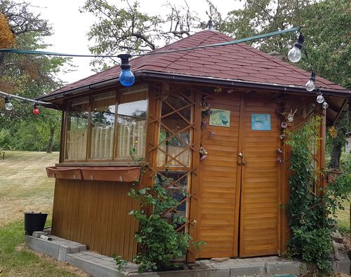 In direkter Nähe zum Bungalow steht ein Pavillon, den man bei einem Aufenthalt gern nutzen kann. Hier kann man in netter Runde erzählen, gern auch Fernsehen oder grillen.