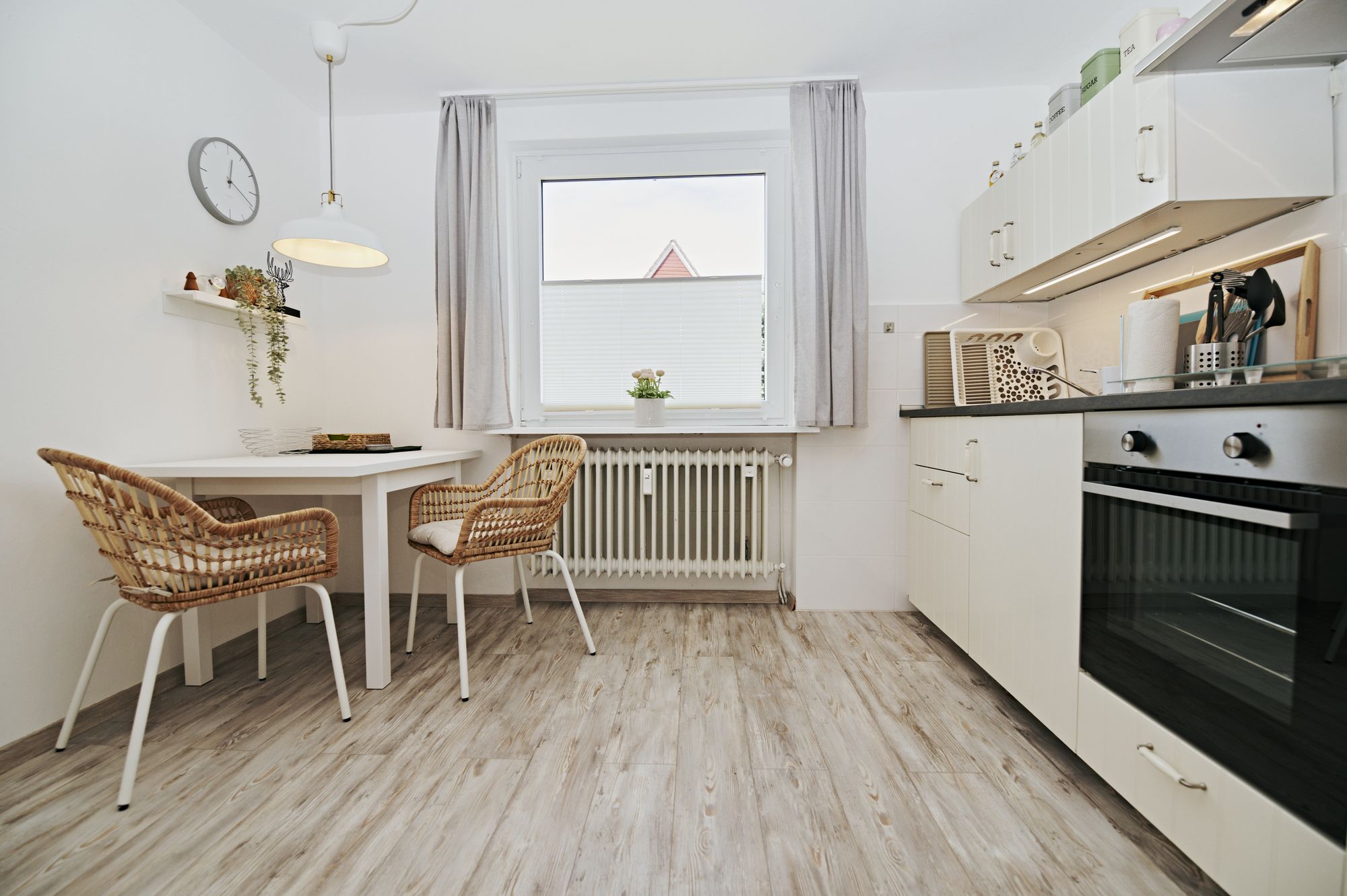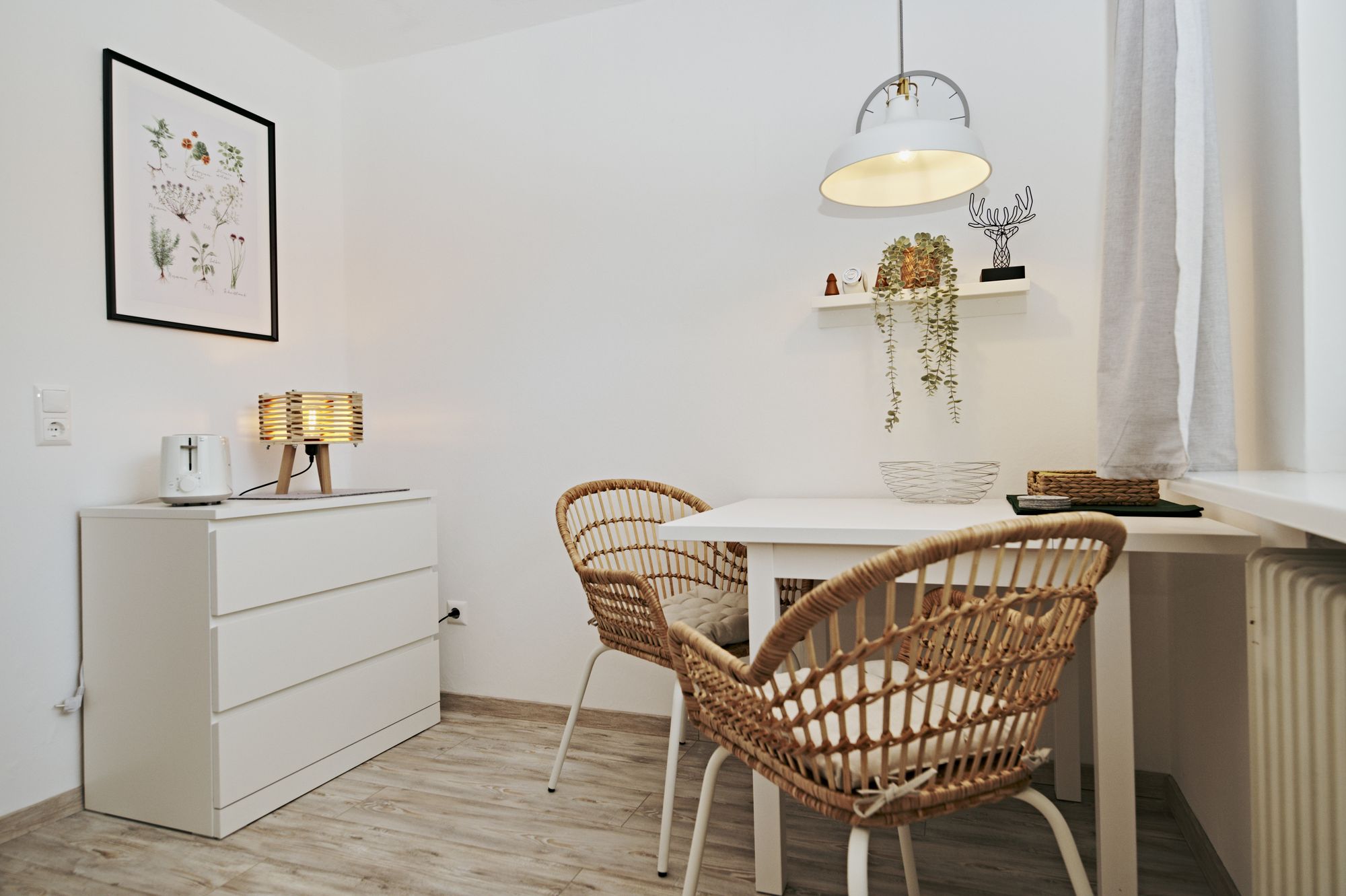 und gemütlicher Esstisch am Fenster mit 2 Bistrostühlen