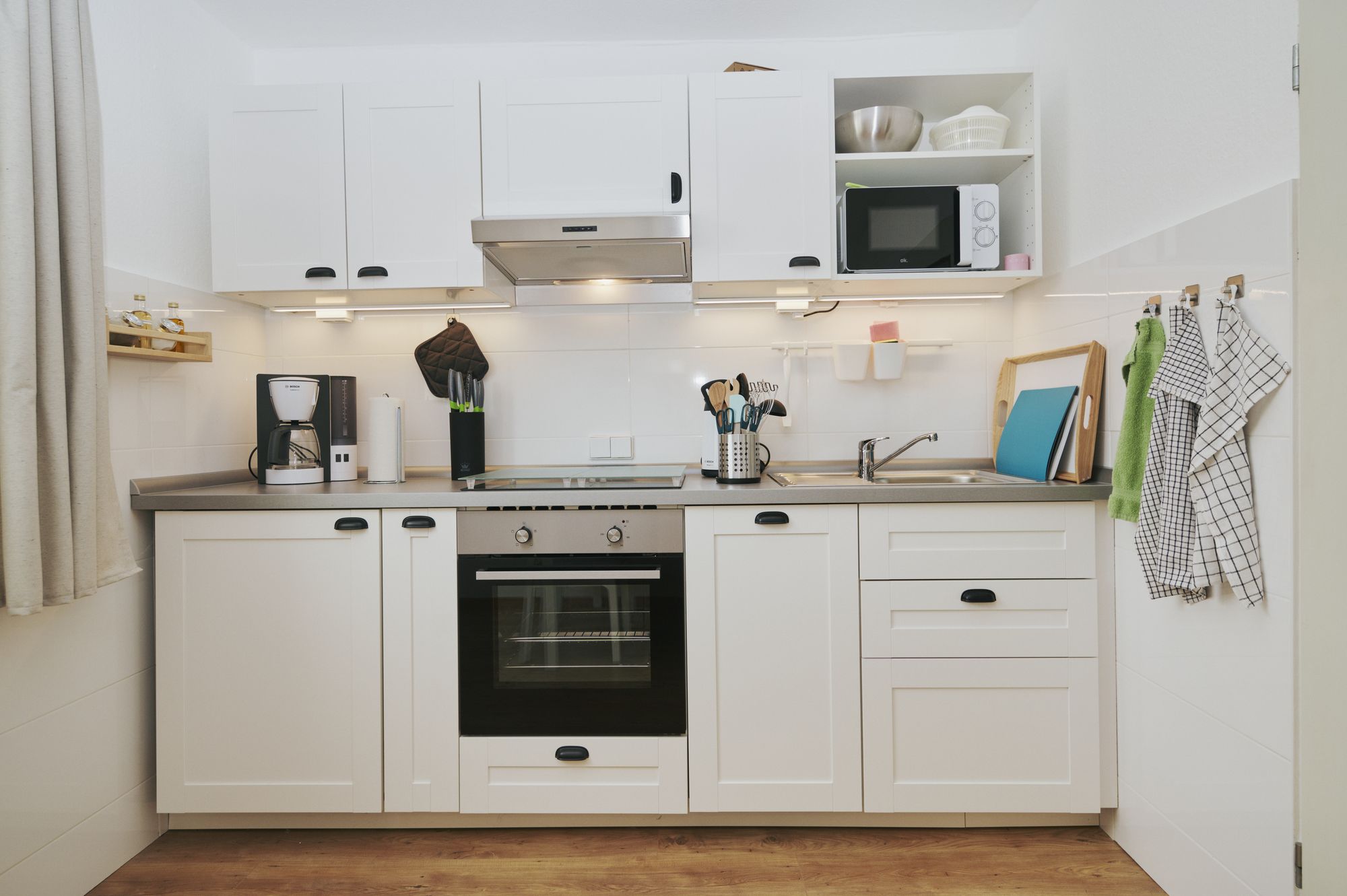 4-Felder-Elektroherd, Backofen, Geschirrspüler, Kühlschrank mit Gefriereinheit, Kaffeemaschine, Wasserkocher, Toaster uvm.