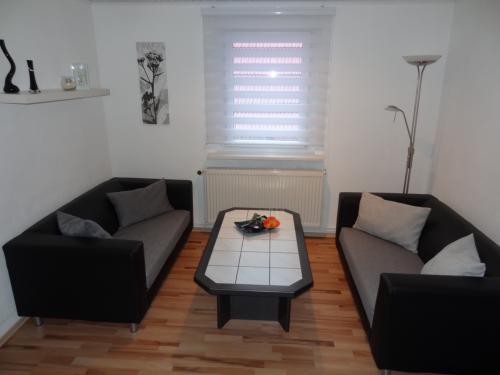 Wohn-/Kochbereich mit 2 Zweisitzern, TV-SAT, Radio, kleine Küche zur Selbstversorgung (Kühlschrank mit Gefrierfach, 2 Ceran-Kochfelder, Kaffeemaschine, Minibackofen, Toaster)