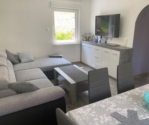 Wohn- und Essbereich mit großer, bequemer Sitzecke (als Aufbettung für 2 Personen geeignet), Flachbild-TV, Esstisch für 6 Personen