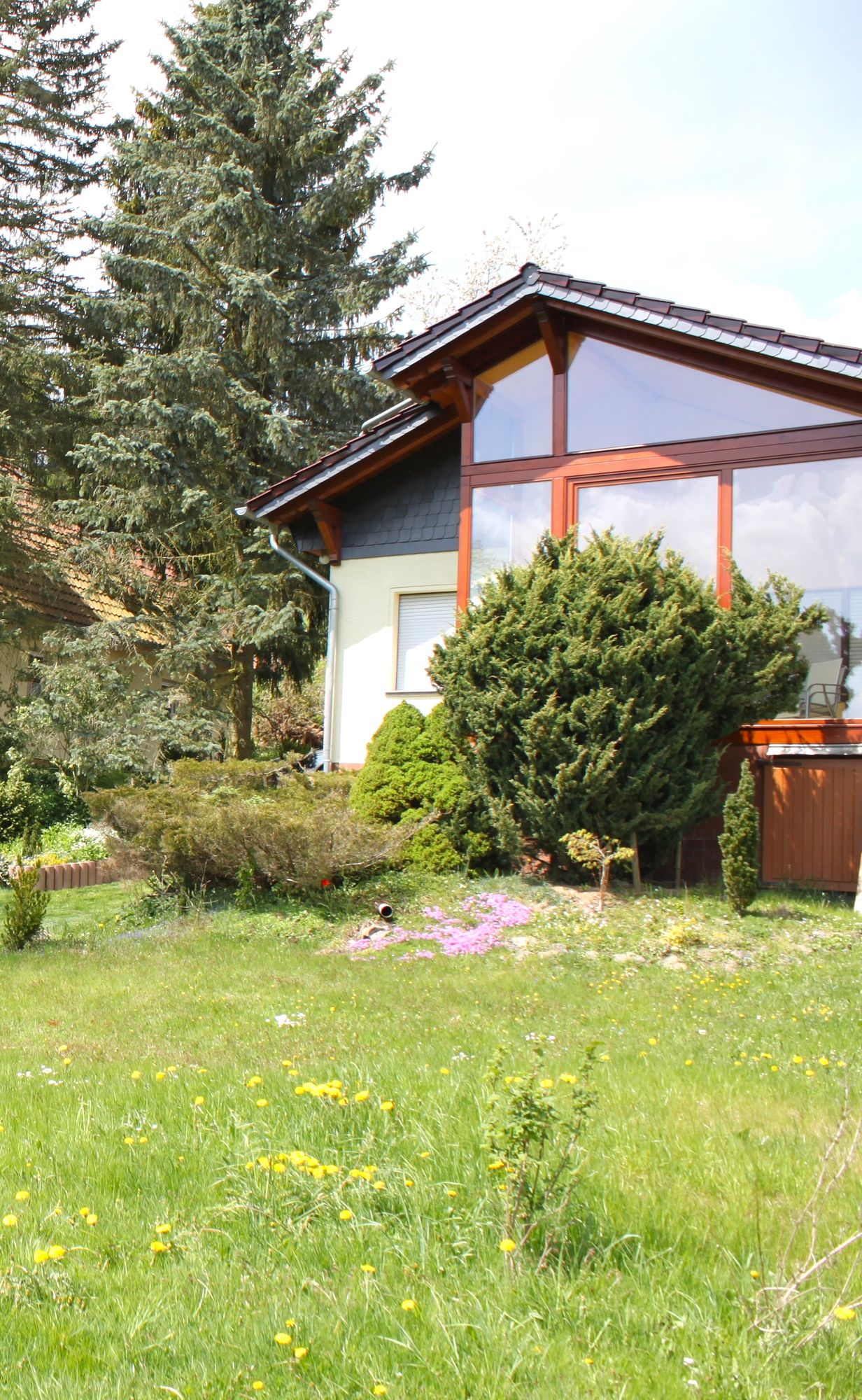 DAS Ferienhaus Waldblick ist ebenerdig, es gibt allerdings 3 Stufen zur Hauseingangstür.