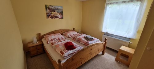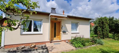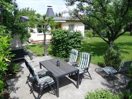 Das Ferienhaus bietet für 4 Personen helle Zimmer zum Wohlfühlen und ganz besonders heimelig - einen Kamin im Wohnbereich. Das Haus steht separat auf dem hinteren Gartengrundstück. Hier können unsere Gäste die weitläufige Liegewiese mit Sandkasten, Kinderrutsche und eine möblierte Terrasse in Südlage nutzen. Natürlich steht Ihnen auch ein Grill zur Verfügung.