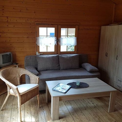 Bungalow für 4 Personen (gut ausgestattete, rustikale Bungalows für bis zu 4 Personen mit einem Wohnzimmer mit Essplatz und TV, Küche, Bad, einem Schlafzimmer mit Doppelbett sowie einem Zimmer mit zwei Einzelbetten oder Etagenbett, Aufbettungsmöglichkeit)