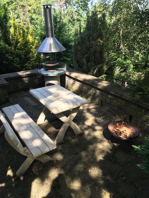 Die beiden Sitzterrassen vor und hinter dem Haus können gern durch unsere Gäste für Grillabende oder zum Genießen von Waldluft und viel zu selten gewordener Abendstille genutzt werden.