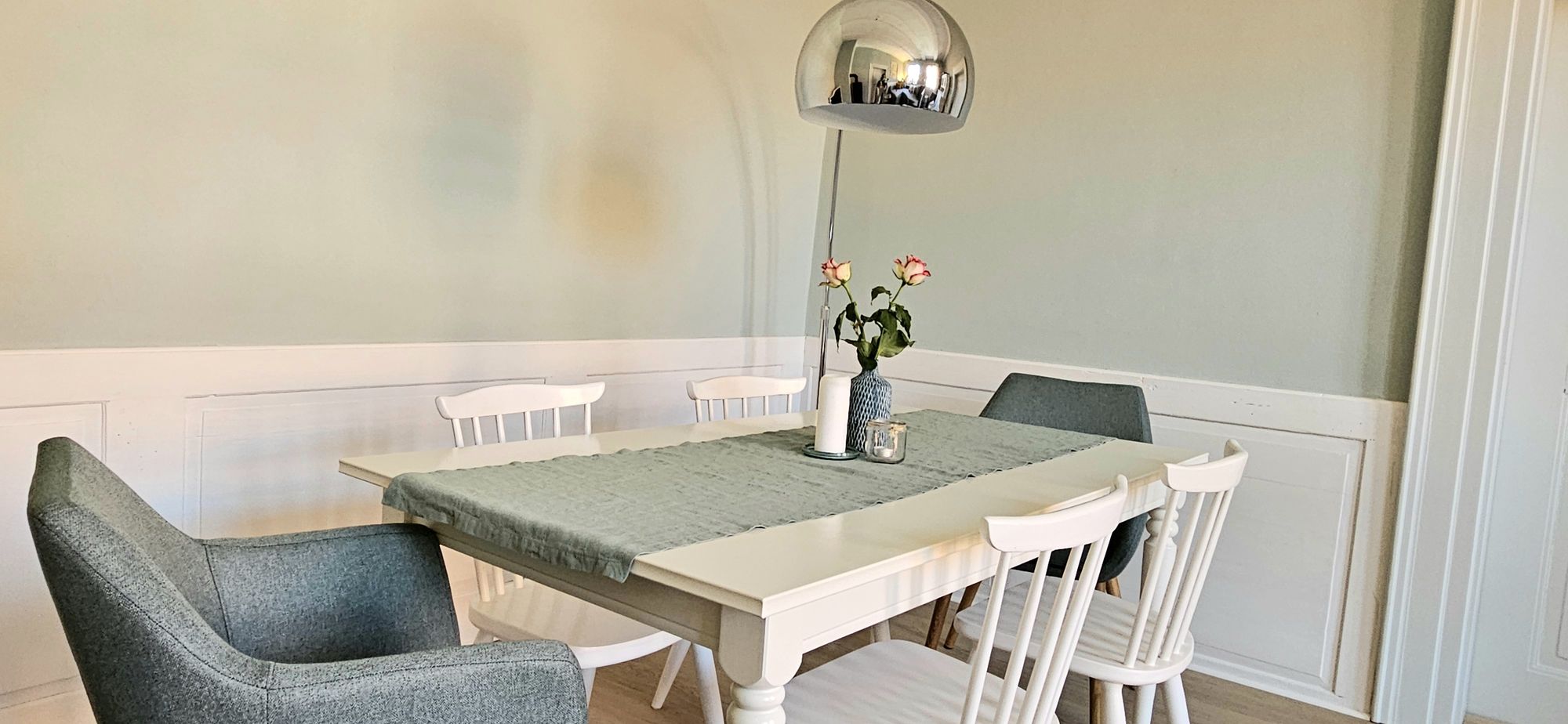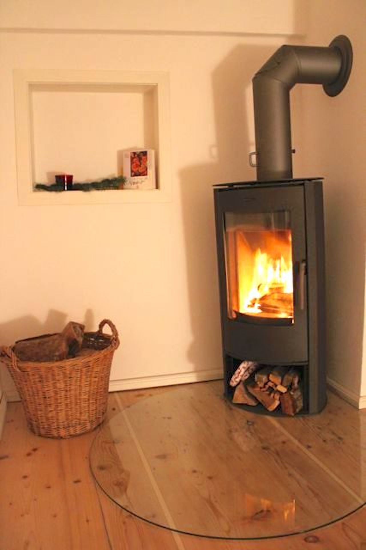 Die größte der drei Ferienwohnungen - genannt Morgenglanz - ist idealerweise für bis zu 6 Personen ausgelegt und verläuft über zwei Etagen - mit drei Schlafzimmern und zwei Bädern. Bei Bedarf hat die Couch im Wohnzimmer eine Aufbettungsmöglichkeit für weitere 2 Personen. Besonders heimelig ist das Wohnzimmer mit einem Kaminofen und mit dem hellen Esstisch, an dem man nicht nur essen, sondern Gedanken austauschen oder gemeinsam spielen kann.