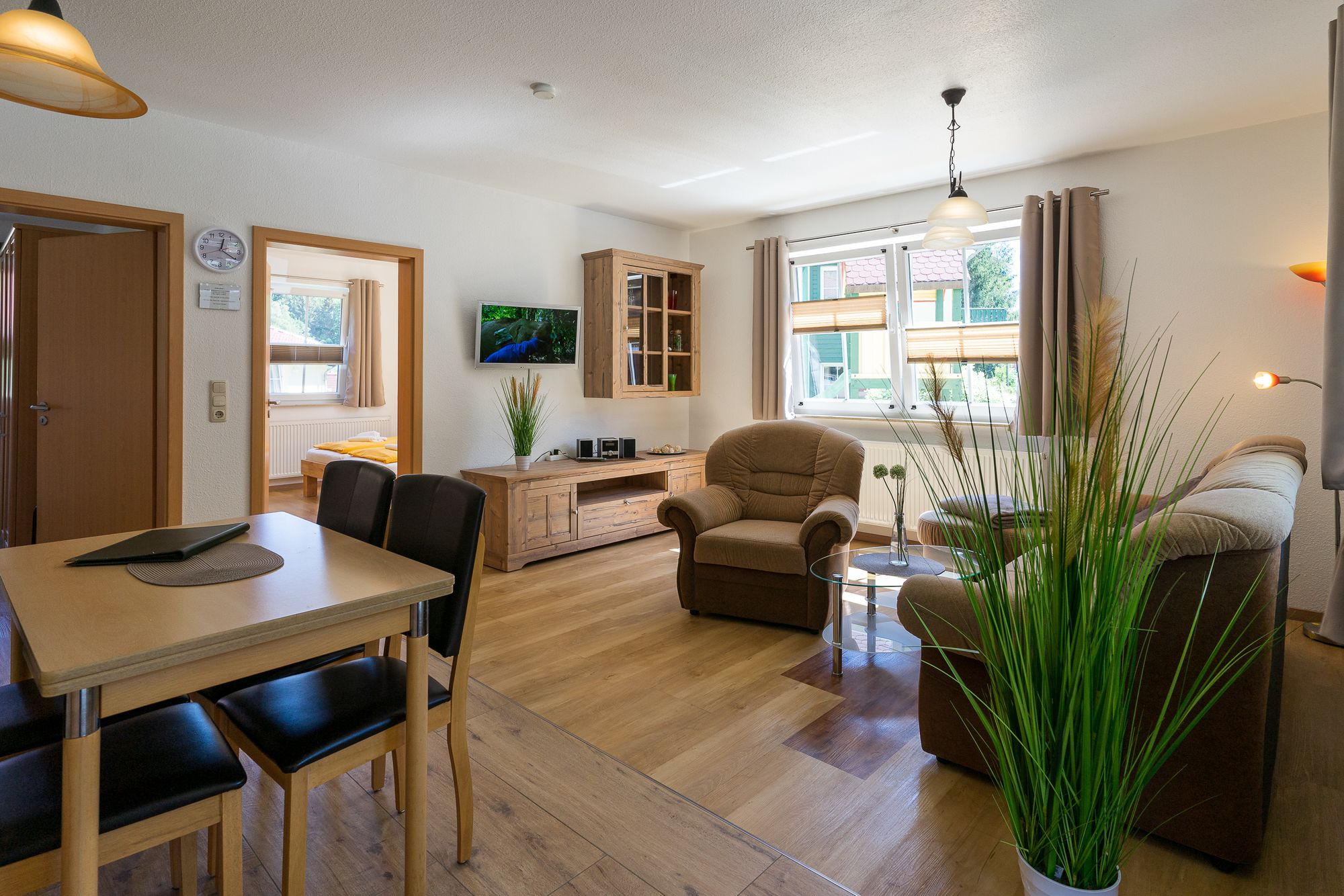 12 Ferienwohnungen -Kirchblick- mit je zwei bzw. 3 Schlafzimmern, gemütliches Wohnzimmer, voll ausgestatteter Küche, Balkon oder Terrasse und modernem Ambiente