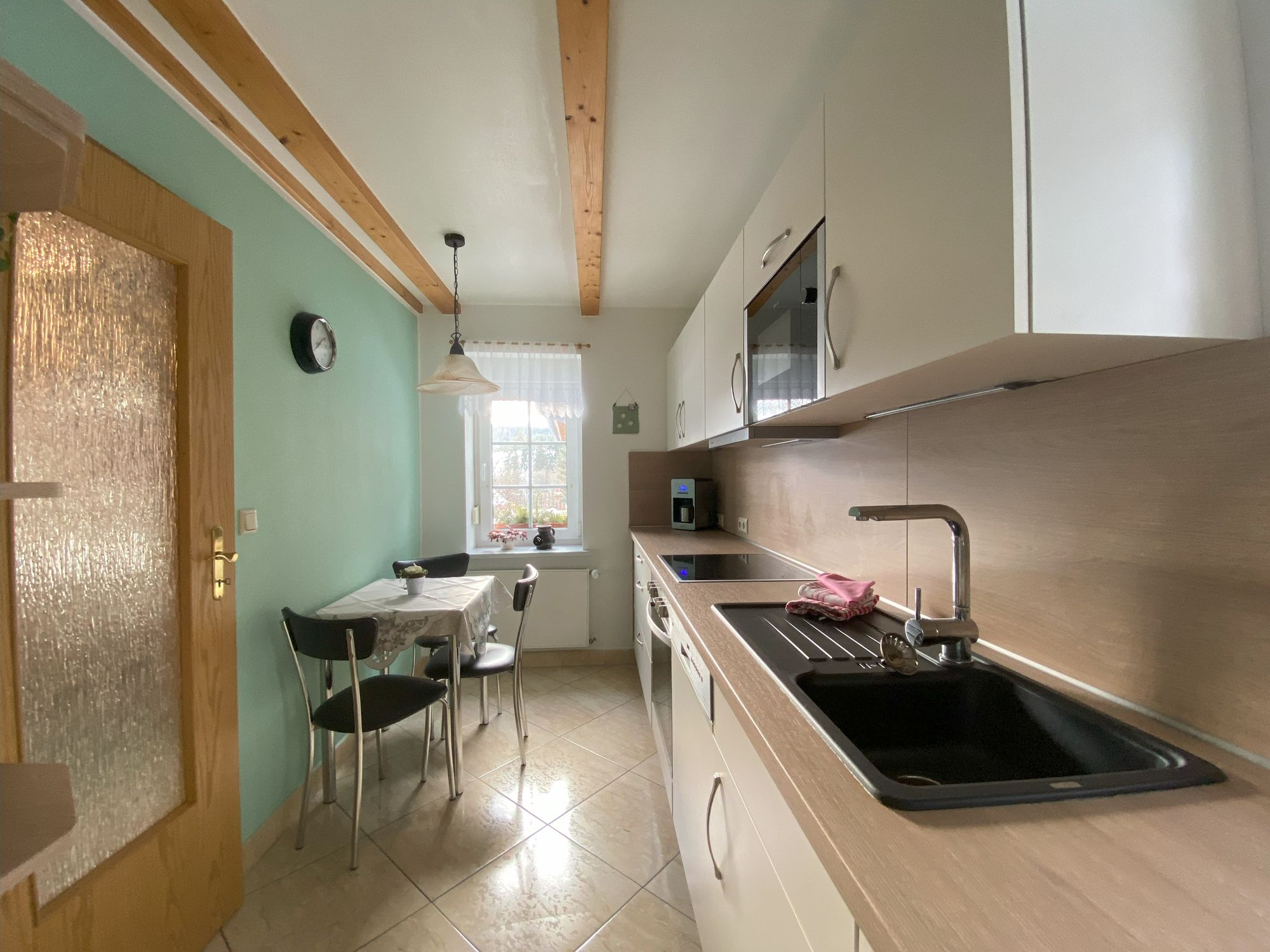 Vollausgestattete Küche mit Elektroherd, Backofen, Kühlschrank mit Gefriermöglichkeit, Geschirrspüler, Kaffeemaschine, Mikrowelle, Toaster
