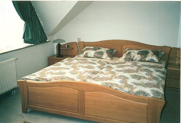 Separiertes Schlafzimmer mit Doppelbett und Kleiderschrank