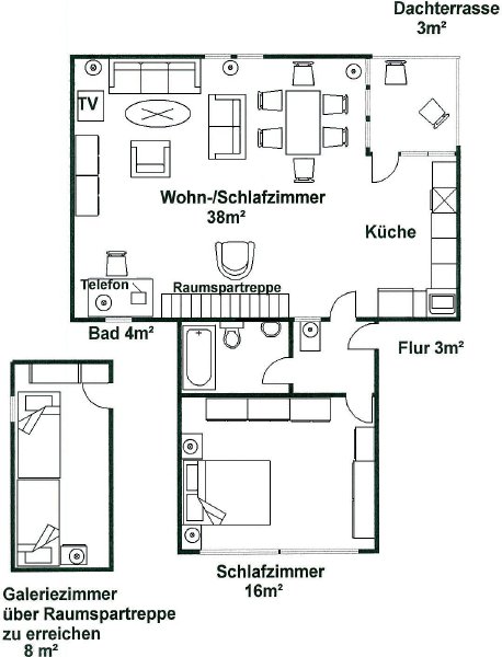 Dachterrasse mit zwei Sitzmöglichkeiten