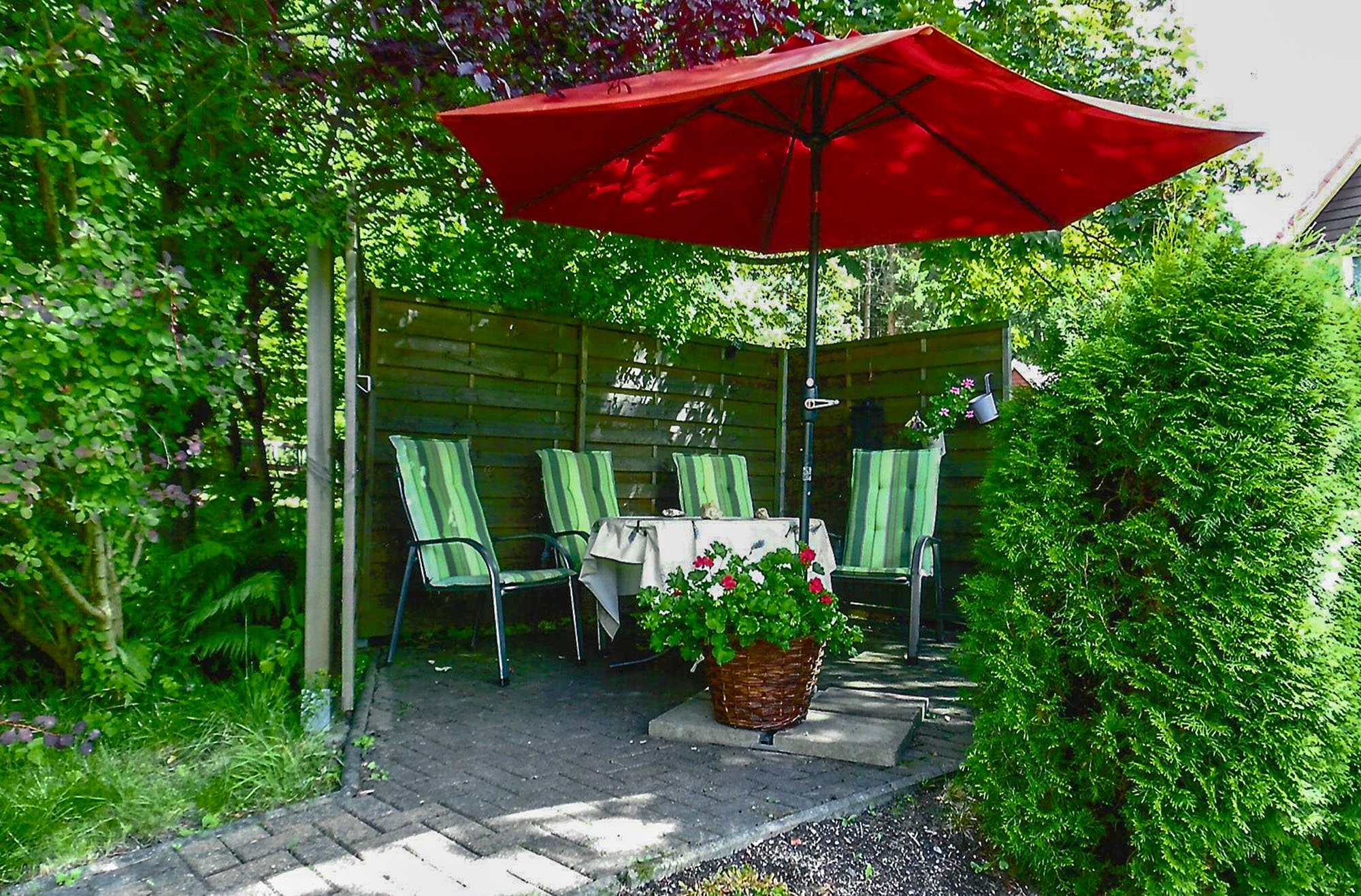 In der Freizeit können Sie das 2.000 qm große Grundstück mit Sitzecken und Gartenmöbeln, großer Liegewiese und einer Grillmöglichkeit für sich nutzen.