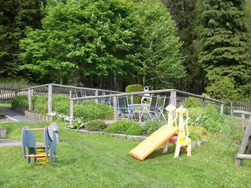 Außenbereich: großer Naturgarten mit Spielgeräten, Grillterrasse und Tischtennisplatte