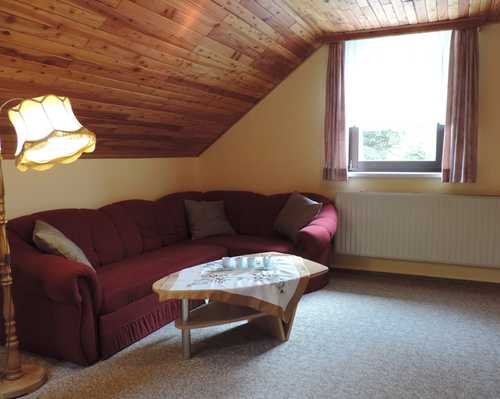 Die Ferienwohnungen - hier speziell die FW 1 im Dachgeschoss - sind rustikal in Harzer Gemütlichkeit ausgestattet. Von der Ferienwohnung 1 genießen Sie einen einzigartigen Blick auf die umliegende Berglandschaft. Sie nutzen natürlich einen separaten Eingang für Ihre Wohnung und haben einen großen Naturgarten mit Gartenmöbeln zum Entspannen oder Herumtollen, einen wunderschön gelegenen Grillpatz sowie ein Klettergerüst und ein Tischtennisplatte für die kleinen und großen Kinder zur Verfügung.