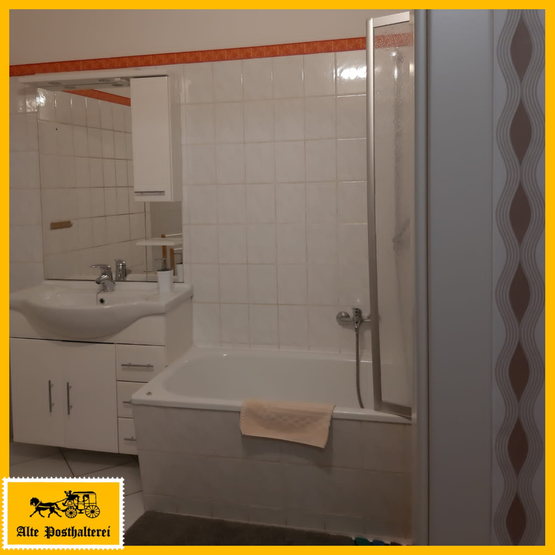 Aufbewahrungsmöglichkeit. Badezimmer mit Badewanne/WC.