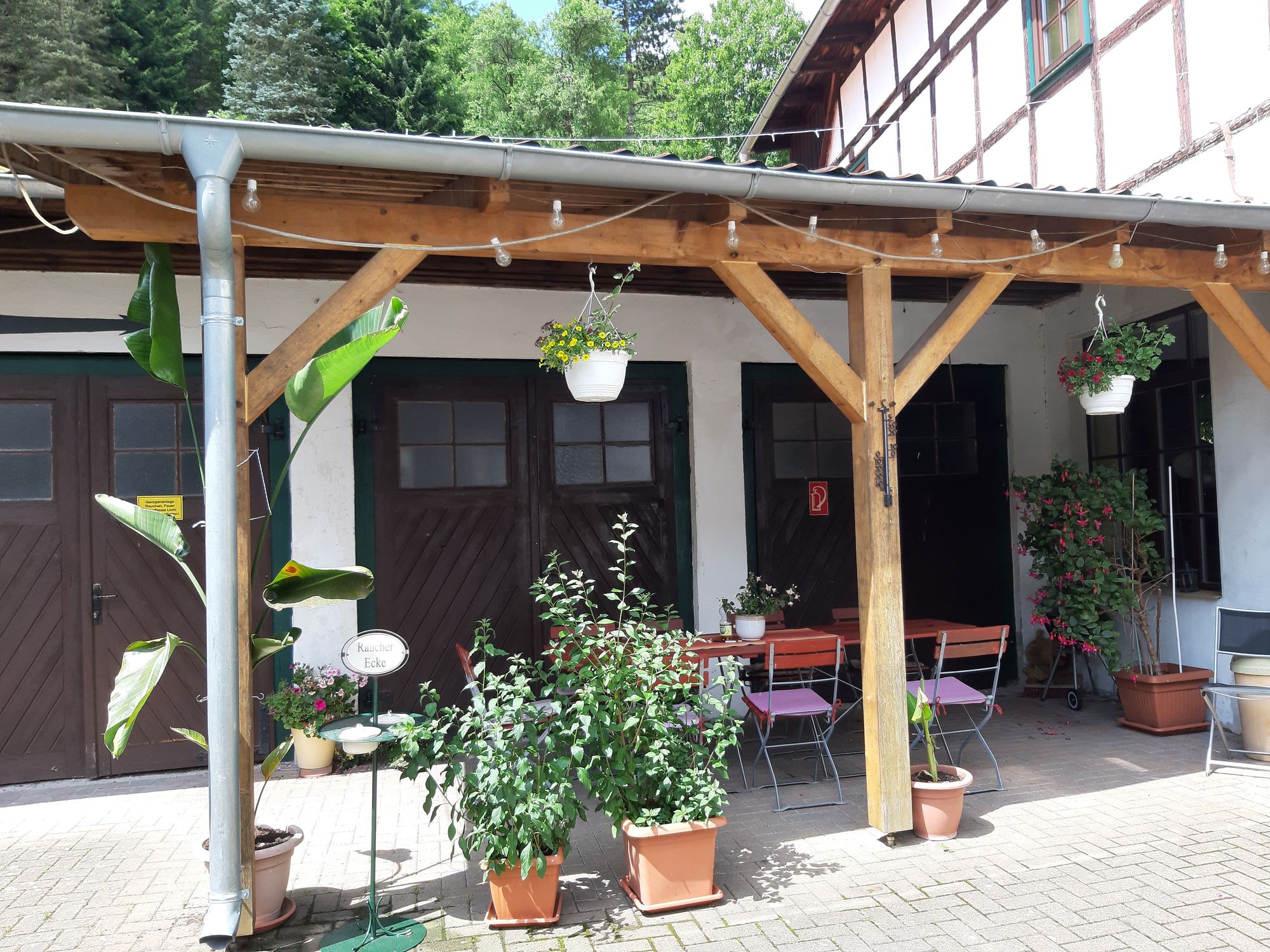Sitzbereich im Hof der Posthalterei zum Frühstücken bei gutem Wetter oder für einen Grillabend
