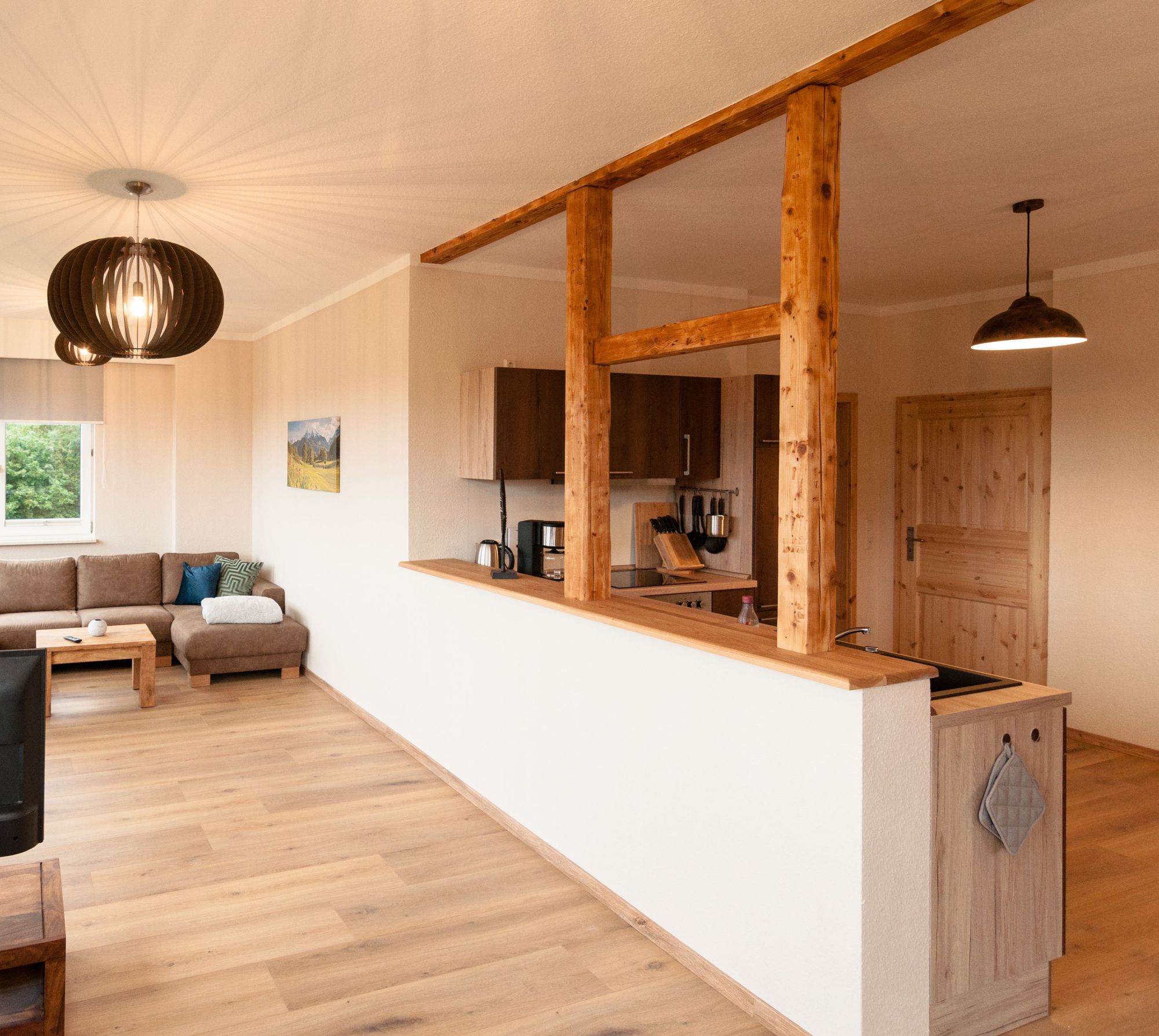 Die Ferienwohnungen Rosstrappe und Bodetal im Haus Falkenhagen bieten Ihnen tolle Ausblicke über den Harzwald und auch die Inneneinrichtung der Ferienwohnungen vermittelt Ihnen ein Gefühl der Naturverbundenheit. Offen gelegte Fachwerkbalken und andere Holzelemente bestimmen die Wohnatmosphäre.