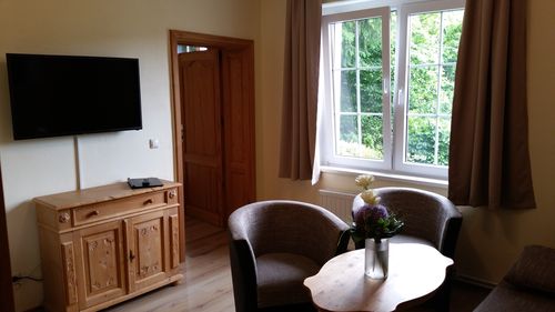 Die Appartements/Familienzimmer sind für 2-4 Personen ausgelegt und bieten einen getrennten Wohn- und Schlafbereich.