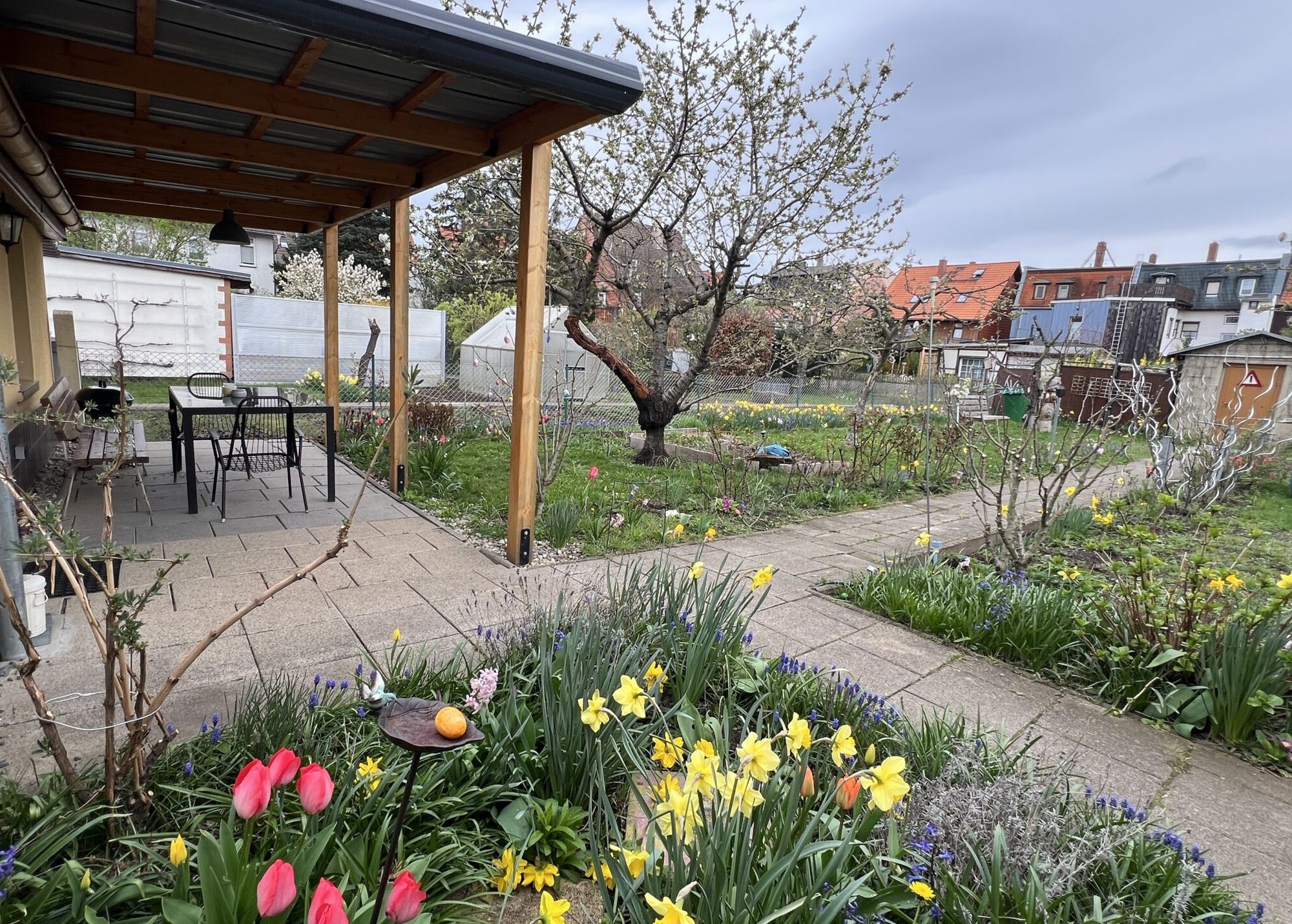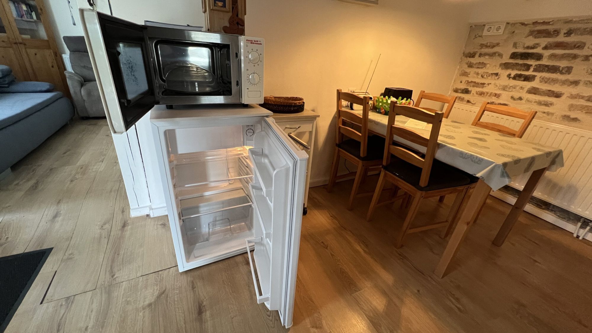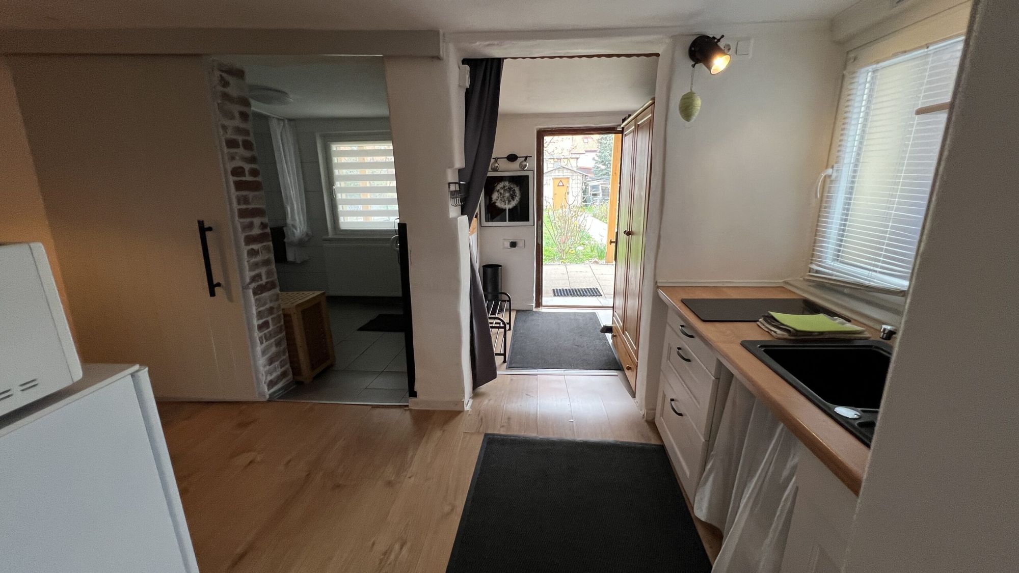 Küche und Essecke sind klein, aber fein - und Sie finden alles Notwendige zum Zubereiten einfacher Mahlzeiten. Ein Highlight ist die stufenlos erreichbare Terrasse mit Blick in den Naturgarten mit einigen Obstbäumen. Unser Obst und Gemüse, wie Kirschen, Heidelbeeren oder Tomaten, können Sie gern ernten und verzehren. Wenn Sie Lust haben, sind Sie herzlich eingeladen, sich ein wenig in der Natur zu betätigen. Unkraut jäten oder das Gießen von Pflanzen in der warmen Jahreszeit kann meditativ wirken. Nach dem Motto: Alles kann, nichts muss!