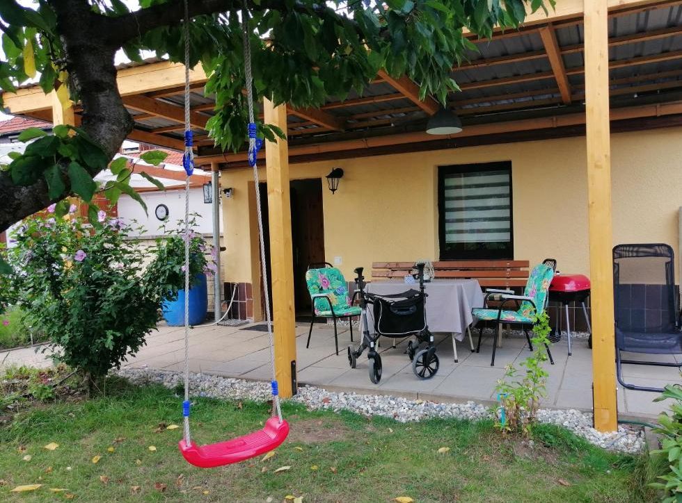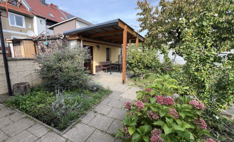 Auf der Terrasse steht Ihnen gern ein Grill zur Verfügung. Der hintere Gartenbereich liegt ruhig und gewährt angenehme Ausblicke.