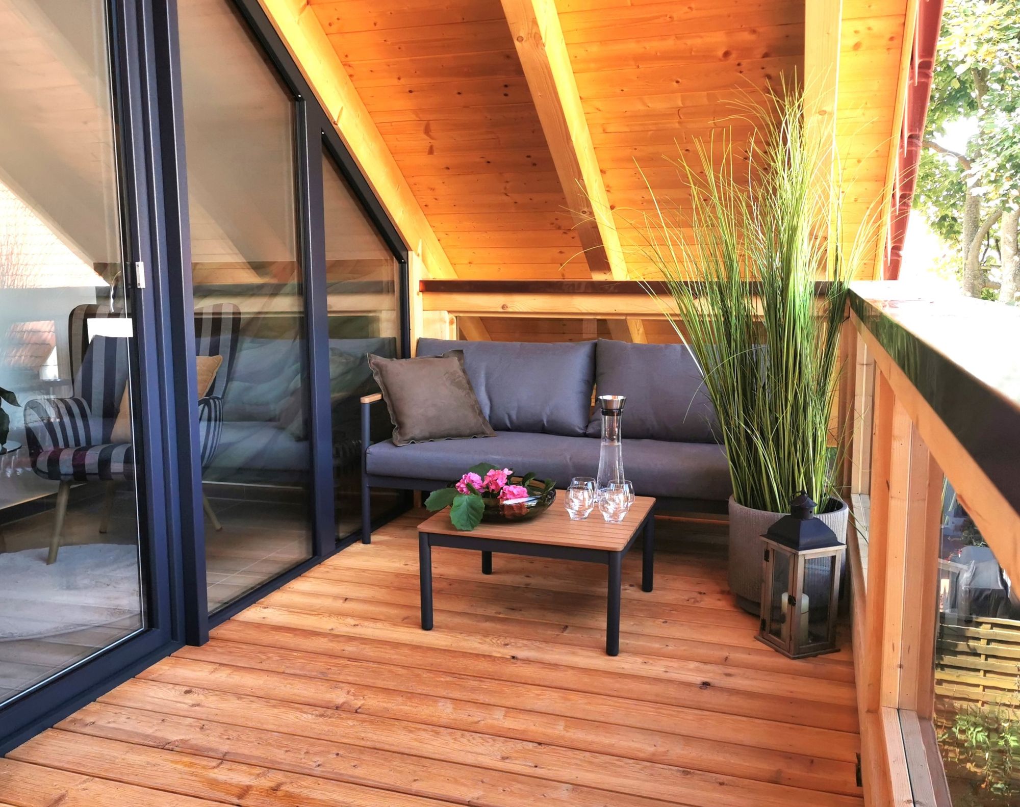 Ein Highlight ist die große Terrasse, auf der man zur Brotzeit in den warmen Monaten die Sonne genießen kann.