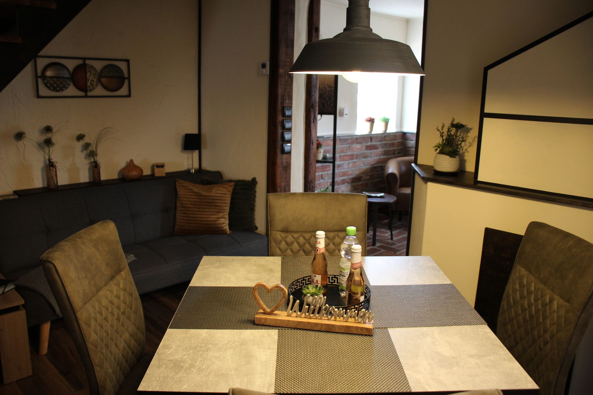 Wir freuen uns, wenn Ihnen in unserem schönen Ferienhaus der Familie Reinke in Wernigerode genau dieses widerfährt. Hierfür haben wir Ihnen diverse Rückzugsmöglichkeiten geschaffen - einen angenehmen Essbereich in der offenen Küche; eine Sofa-Kuschelecke unter der Treppe; einen Lesebereich mit Sessel am Fenster oder die Gemütlichkeit pur auf der großen Couchgarnitur mit Blick auf den Kamin und auf die Bücher - welche darauf warten, von Ihnen gelesen zu werden.