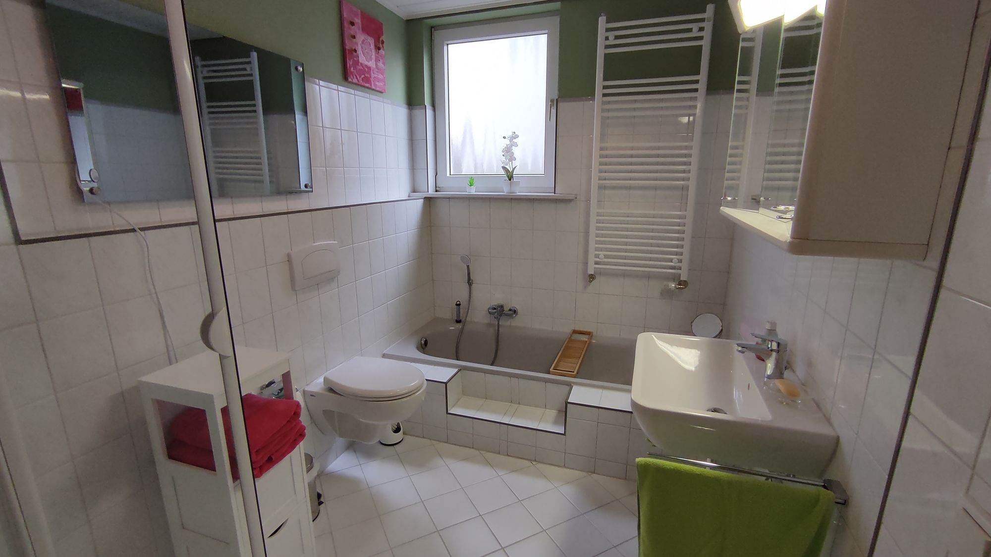 Bad mit Badewanne und Dusche/WC und Fenster (Fön ist vorhanden)