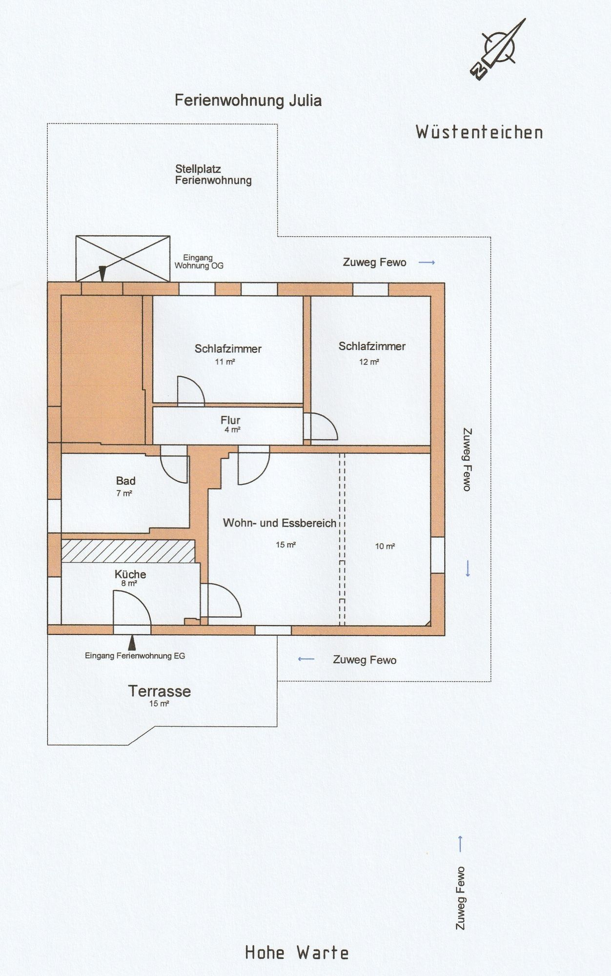 Die Ferienwohnung Julia erreichen Sie über einen separaten Eingang. Der großzügige Schnitt der Ferienwohnung und die beiden Schlafzimmer machen einen entspannten Aufenthalt von 4 Personen möglich. Im Bad stehen Ihnen sogar Dusche und Badewanne zur Verfügung.