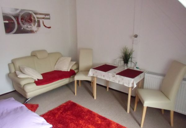 Die hell und freundlich eingerichteteten Ferienzimmer sind für 2 bis 4 Personen geeignet und befinden sich im 2. Obergeschoss in einem attraktiven Fachwerkhaus im Ortsteil Hasserode - Richtung Schierke (ca. 1,2 km vom Stadtkern entfernt). Die Ferienzimmer unterteilen sich in ein gemütliches, kombiniertes Schlaf-und Wohnzimmer mit Doppelliege sowie in ein weiteres Schlaf- und Wohnzimmer mit zwei Einzelliegen. In beiden Zimmern ist ein Fernseher vorhanden.