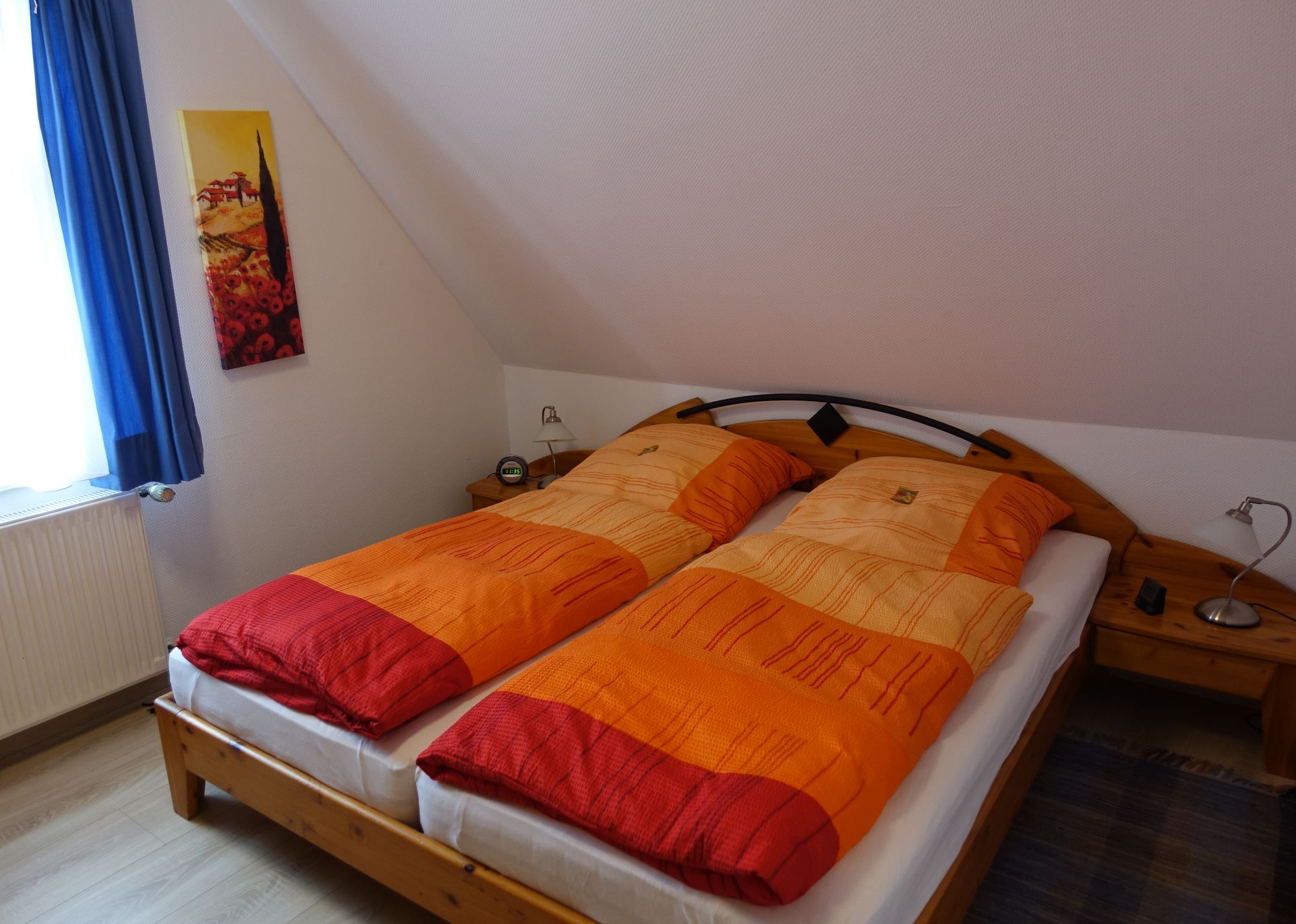 Eines der beiden Schlafzimmer mit Doppelbett finden Sie auf dieser Ebene, das andere Schlafzimmer (Doppelbett 1,40 m x 2,00 m) ist im Maisonettestil über eine Wendeltreppe erreichbar. Kindern steht im Seitengiebel eine Spielecke zur Verfügung.