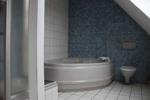 Dachgeschoss mit großem Bad, 2x Waschtisch, DU/WC, Eckwanne, großem Wohnzimmer, 1 Schlafzimmer mit Doppelbett, 1 Schlafzimmer mit 2 Einzelbetten, Küche mit Sitzecke (Bettwäsche, Handtücher inkl.)