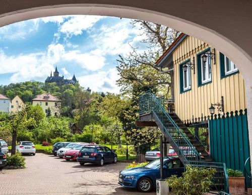 Unsere ruhige Innenstadtlage und die komfortablen Zimmer im Landhausstil werden von unseren Gästen sehr geschätzt. Teilweise bieten wir Ihnen sogar einen Blick zum bekannten Wernigeröder Schloss.