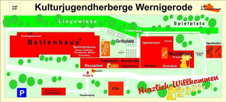 Die Jugendherberge liegt - von einem großzügigen Außengelände umgeben - im Ortsteil Hasserode; ca. 20 min Fußweg von der historischen Innenstadt entfernt.