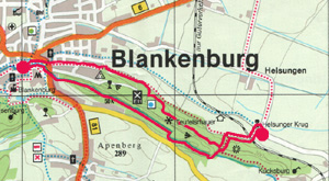 Für den Rückweg ist der Weg nördlich der Teufelsmauer empfehlenswert. Über den Heidelberg erreicht man die Stadt Blankenburg (Harz) in Höhe des Lühnertorplatzes, dem zentralen Platz der Stadt.
