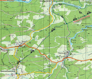 Zwischen Benneckenstein und Rübeland, läuft die Strecke über die alte Forststraße "Die Lange", die sich schnurgerade durch Fichtenbestände zieht und sowohl historische als auch Naturschauplätze zu bieten hat. So erreicht man bei Königshütte - 8 km hinter Benneckenstein gelegen - die Königsburg und die Überleitungstalsperre der Bode.