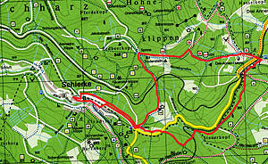 Wir folgen dem Ackerweg bis zur Spinne - einem Wegekreuz. Dann schwenken wir nach rechts und folgen dem Wormkegraben. Anschließend gelangen wir zum Aussichtspunkt Trudenstein (774 m). Wir wandern weiter auf dem Glashüttenweg und gelangen zu einer weiteren Wegkreuzung, die uns linker Hand zu den Leistenklippen führen würde. Wir begeben uns jedoch nach rechts talwärts über große, offene Wiesenlandschaften, blicken über den Ostharz und erreichen auf einem Forstweg den Bahnhof Drei Annen Hohne mit einer Einkehrmöglichkeit.